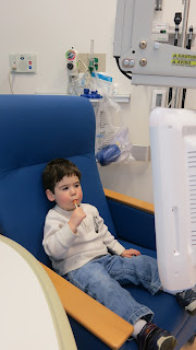 Last week, Henry seemed to be bleeding and bruising easily. So, we took him for labs on Thursday. My bet was that he needed platelets. I was wrong. Platelet level was fine, but he needed some blood. So, a "quick" lab appointment turned into a six hour day. Not too uncommon for us, but still... a long day.